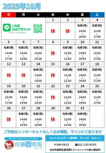 ~サトコツ みなこい店~【2025年10月 シフトのお知らせ】 平素よりセントラルスポーツ接骨院サトコツみなこいをご愛顧いただきまして誠にありがとうございます。 2025年10月からのスタッフの出勤状況をお知らせいたします。 ご希望の施術スタッフがいらっしゃる場合には下記のシフト表をご参照ください。